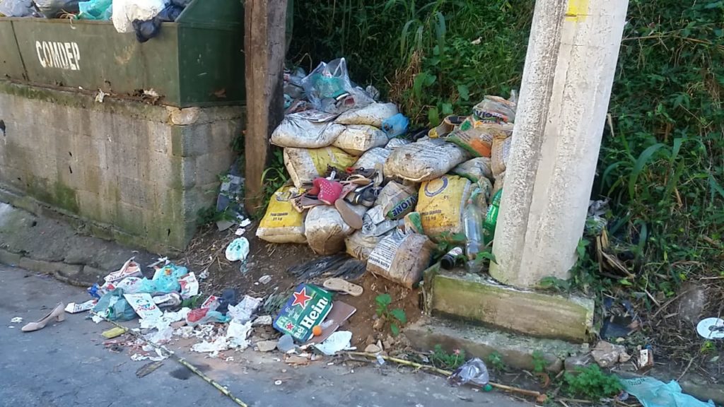 Moradores da Rua Waldemar Ferreira da Silva, n° 548, no Centro, reclamam do abandono em relação a coleta de lixo. A região, conhecida como Caxambu de baixo, está com as lixeiras lotadas e entulho em parte das calçadas. Além disso, os equipamentos estão deteriorados, devido a ação do tempo, e precisam de manutenção. Quem circula pelo local pede que a Comdep faça o recolhimento dos detritos. Além do mau cheiro, animais peçonhentos são atraídos para a área e colocam em risco principalmente os pedestres.