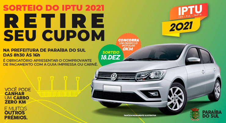 Cupons do sorteio do IPTU 2021 podem ser retirados na Prefeitura de Paraíba do Sul