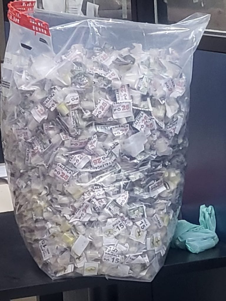 Durante uma blitz, nas proximidades da praça do pedágio, com o objetivo de coibir infrações de trânsito, os policiais deram ordem de parada a um veículo de passeio, que ao se aproximarem, desconfiaram do odor forte de erva (maconha) e deram sequência com uma revista no interior do automóvel de passeio, onde foram encontrados, dentro do porta-malas, 1.818 embalagens de maconha, com valores impressos de R$15,00, R$20,00 e R$50,00. Além disso, também foram localizados 5.713 pinos de cocaína divididos em embalagens de R$25,00 e R$ 50,00. Ao todo, foram contabilizados 11,2 Kg de maconha e 12,3 Kg de cocaína.